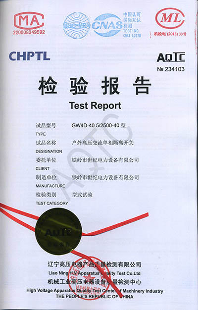 戶(hù)外高壓交流隔離開(kāi)關(guān)檢驗(yàn)報(bào)告