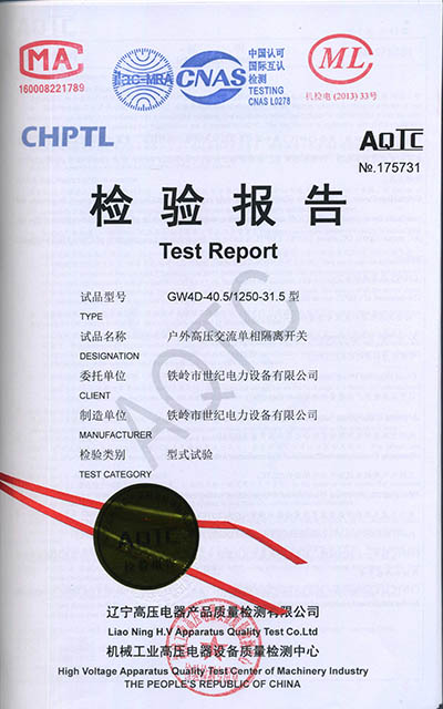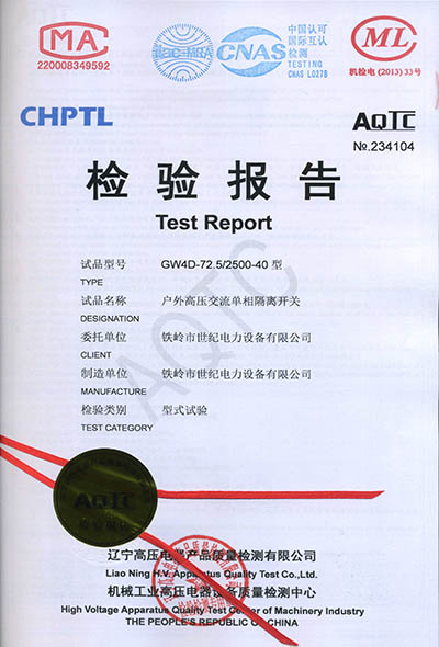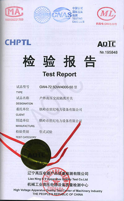 戶外高壓交流隔離開(kāi)關(guān)檢驗(yàn)報(bào)告